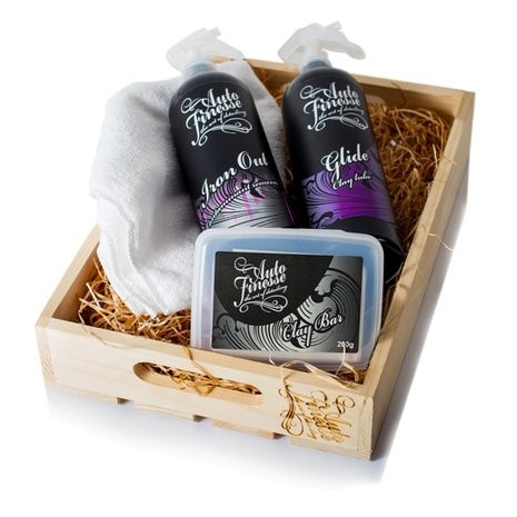 Auto Finesse Deluxe Paint Decontamination pack: Kompletní, cenově zvýhodněná sada autokosmetiky určená ke kompletní dekontaminaci laku. Sada dodávaná v luxusní ručně vyráběné dřevěné přepravce s vygravírovaným logem Auto Finesse.