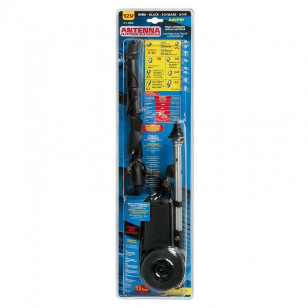 Automatická autoanténa, teleskopická, do blatníku. Velmi kvalitní autoanténa, plně automatická od Italské firmy Lampa. Anténa elektricky ovládaná černá 8ks adaptérů. Teleskopická elektricky vysouvací anténa do blatníku. Napětí 12 V, CE homologace. Nastavitelný sklon základny: univerzální 0 - 30 stupňů. Pevný sklon základny: 26 / 38 /48 / 50 / 52 / 62 / 68 stupnů. Dodávané kompletně s montážní sadou a pokyny k instalaci - 8ks adaptérů pro správnou instalaci.