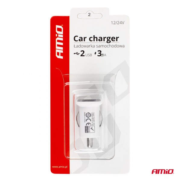Autonabíječka mobilního telefonu s 2xUSB bílá PCH-01