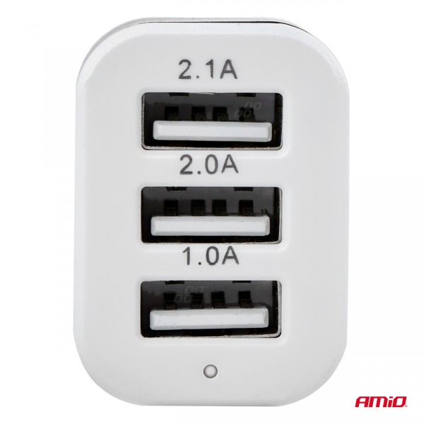 Autonabíječka mobilního telefonu s 3xUSB bílá PCH-03