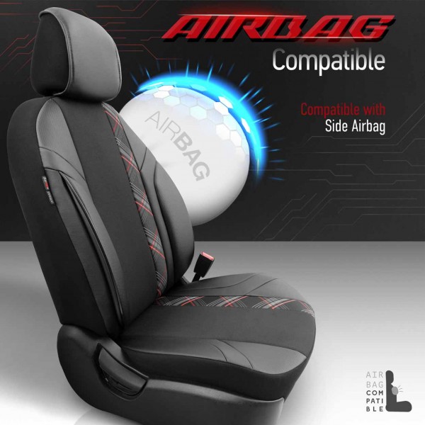 - potahy mají mnohokrát testovaný a certifikovaný airbagový šev, díky čemuž jsou vhodné i pro vozy s bočními airbagy v sedadlech, díky použití speciálního švu zcela pokryjí sedadla, aniž by narušily práci airbagů