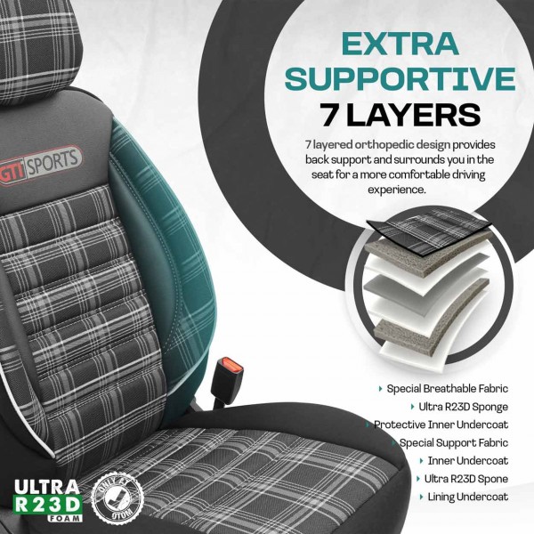 Potahy mají na zadním sedadle zipy, takže pasují na většinu sedadel dostupných na trhu (nedělená, pravá a levá dělená sedadla). Pro zvětšení zavazadlového prostoru můžeme snadno sklopit opěradla.
