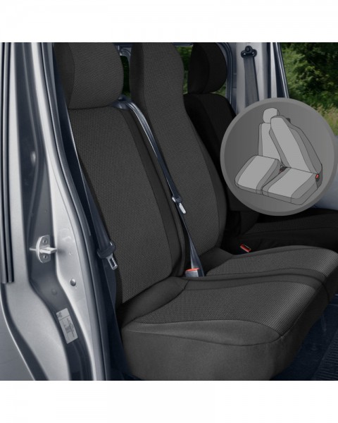 Spolujezdec - potah na dvojsedačku s dělenou spodní částí a výklopnou opěrnou částí u řidiče.
