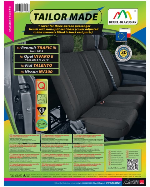 Sada obsahuje 1x potah na sedací část, 2x potah na opěrnou část, 3x potah na opěrku hlavy a montážní háčky. Autopotahy jsou šité ze zátěžové polyesterové tkaniny (100% polyester). Vnitřní strana autopotahů je obšita materiálem z PUR pěny, který zabraňuje klouzání po sedadle, takže se potahy nehrnou a nemačkají.