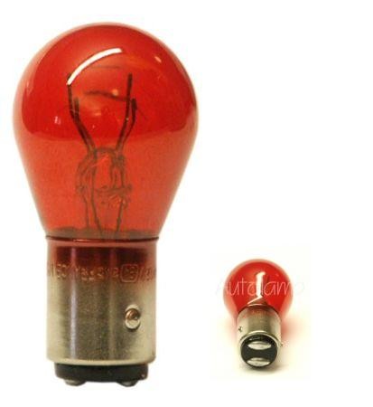 Žárovka PR21/5W například pro vozy Ford Focus (poziční+brzdové světlo).Červená baňka. Patice má vystoupené kolíky na pozici 7 hodin, v různé výšce.