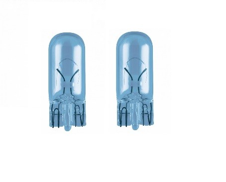 Krabička obsahuje dvě halogenové žárovky a dvě bezpaticové modré žárovky T10