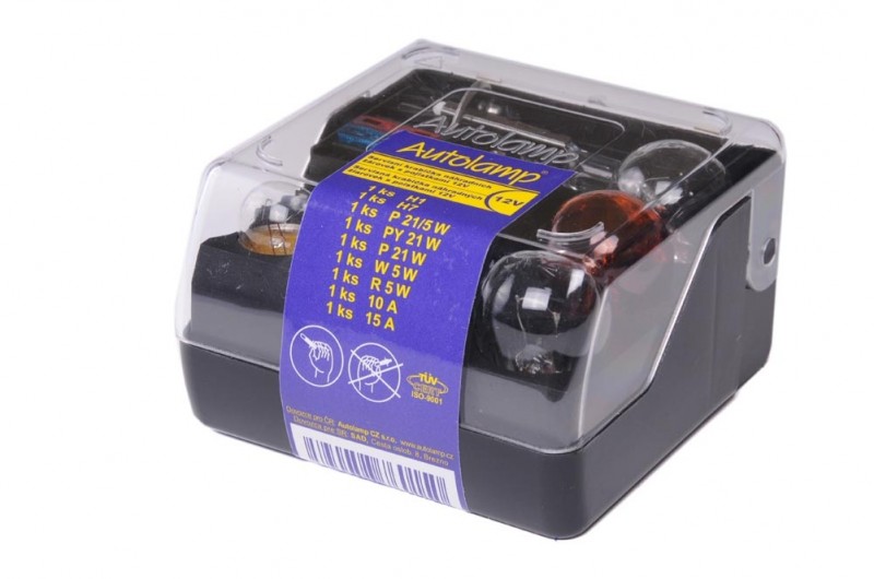 složení: 1ks H1 1ks H7 1ks P21/5W 1ks PY21W 1ks P21W 1ks W5W 1ks R5W 1ks nožová pojistka 10A 1ks nožová pojistka 15A