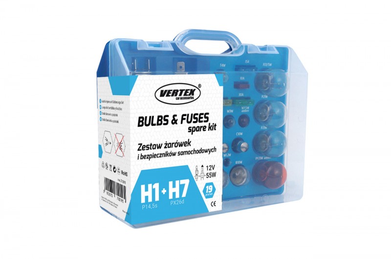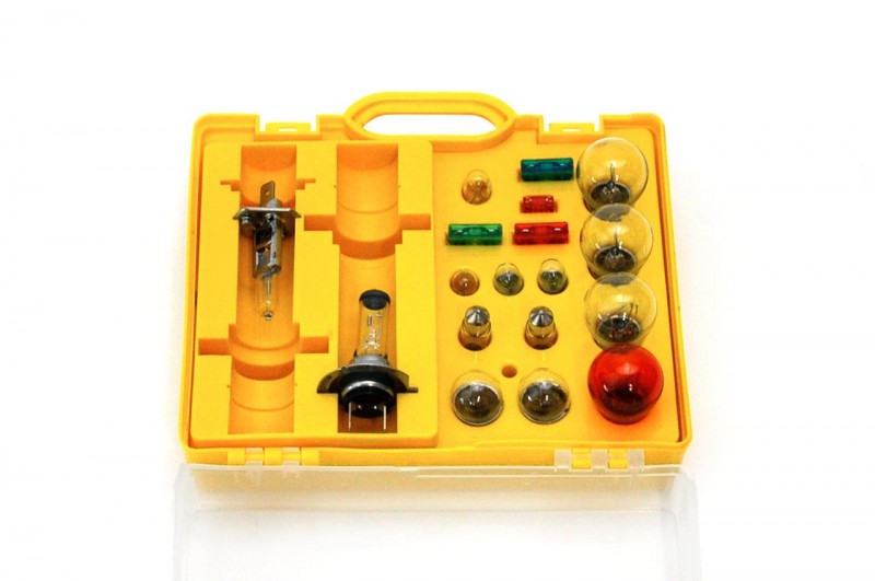 Servisní krabička do povinné výbavy vozidla s hlavní žárovkou H1 a H7.