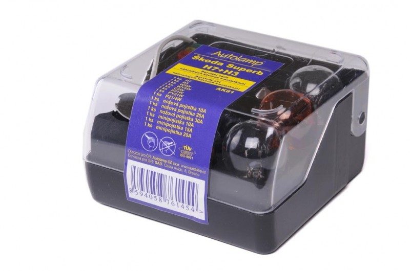 složení: 1ks H3 1ks H7 1ks PY21W 1ks P21W 1ks P21/4W 1ks W5W 1ks WY5W 1ks C5W 1ks nožová pojistka 10A 1ks nožová pojistka 20A 1ks nožová pojistka 30A 1ks mini pojistka 10A 1ks mini pojistka 15A 1ks mini pojistka 20A