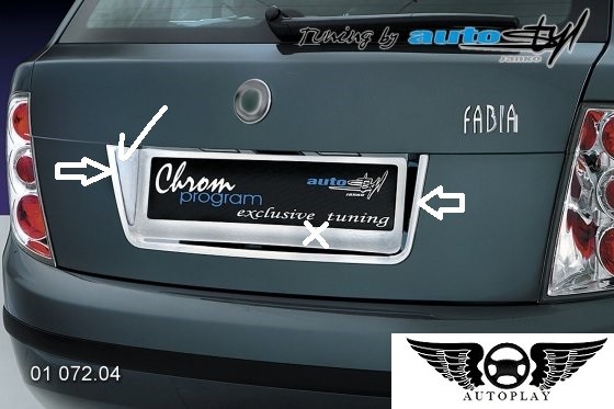 Chromový rámeček, přesně pasující do prohlubně zadních dveří pod SPZ. Nejedná se o držák SPZ. Ten se připevňuje, až na daný rámeček. Daný rámeček krásně vyplní prohlubeň do chromu okolo SPZ a tím dokonale změní zadní část vozu. Výrobek má atest 8SD. Je vyroben z ABS plastu a je galvanicky pochromován. Nehrozí žádné opadávání chromu, jako u levnějších výrobků. Montáž se provádí nalepním, které je součástí výrobku.