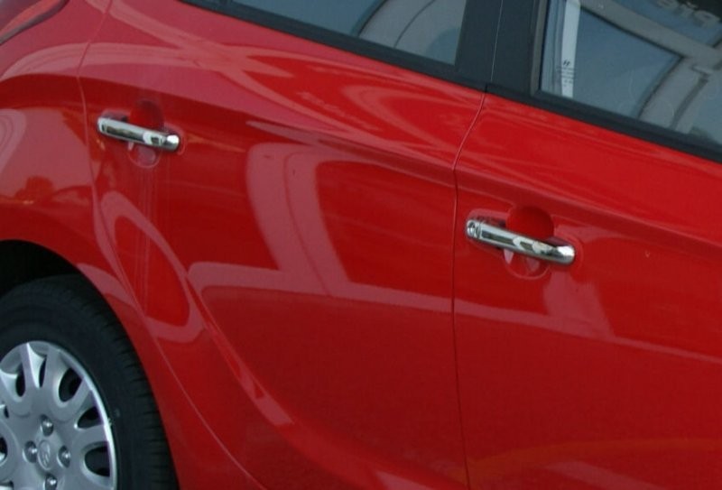 Hyundai i20, i30 do roku 2012 - NEREZ chrom kryty klik OMSA - nerez chrom provedení - kompletní 8-dílná sada (s 1x otvorem pro zámek) - vyrobeno z ušlechtilé nerez oceli - žádný pochromovaný plast - vyleštěno do zrcadlového lesku - super silná oboustranná 3M páska - 3M páska již předinstalována - jednoduchá instalace - záruka 3 roky (!!!) - super design pro Vašeho Hyundaie I-20, I-30