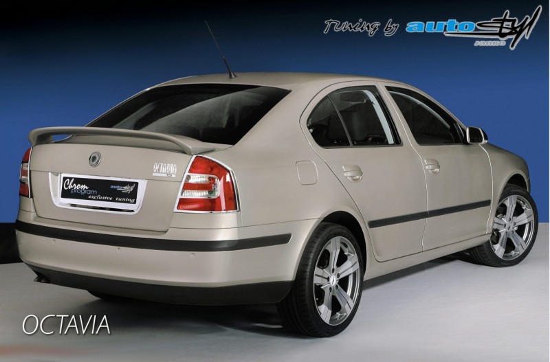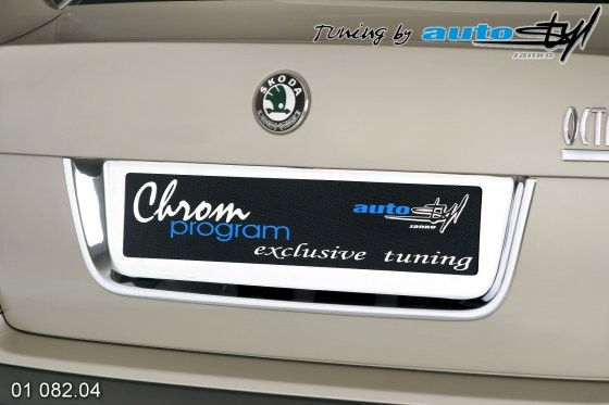 Chromový rámeček prohlubně zadních dveří pod držák zadní značky. Je vyroben z plastu, který je galvanicky pochromován, tedy chrom vydrží a neopadává jako u levných stříkaných pochromovaných výrobků. Je přesně vytvarován a určen pouze por model sedan. Výrobek má atest 8SD pro provoz. Montáž se provádí nalepením na pásku.