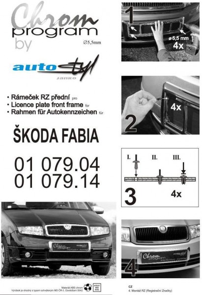 Chromový rámeček pod a okolo přední značky je určen pro Fabii 1 do roku 8/2004.