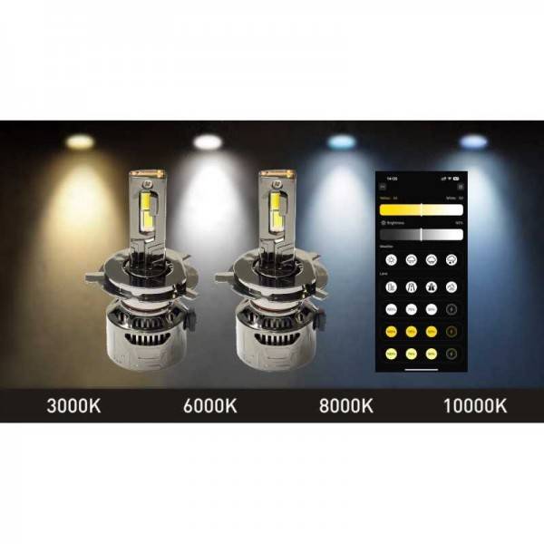 Chytré LED žárovky H4 12V - úprava světla přes telefon (sada 2ks)
