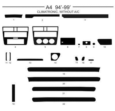 Dekor interiéru Audi A4, 1994-1999, climatronic, bez klimatizace, černý