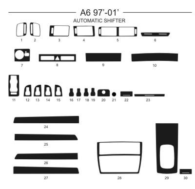 Dekor interiéru Audi A6, 1997-2001, automatická převodovka, černý