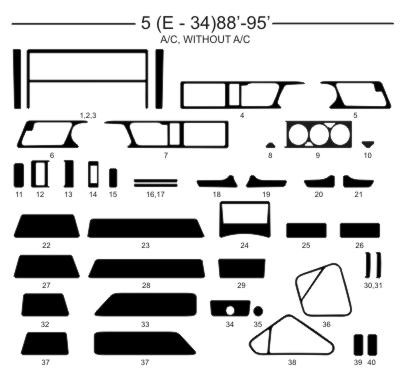Dekor interiéru BMW E34 1988-1995 s klimatizací, bez klimatizace, červený