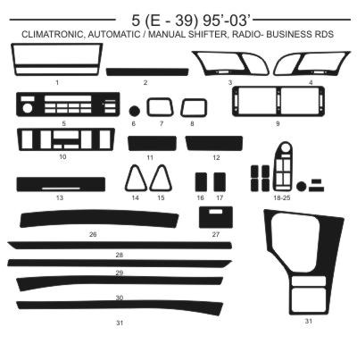 Plastický samolepící pryskyřicový dekor o síle 0,2-0,5mm. Jedná se o přesné výrobky na každý model vozu. Vzhledem k tomu, že se tyto výrobky vyrábějí na zakázku a objednávají ze zahraničí, prosíme o trpělivost. Dodací lhůta je cca 7-18dnů. Každý díl je samolepící a přesně vymodelován na danou část interiéru vozu. Polep je zalit v čiré pryskyřici silné cca 0,2-0,5mm, odolné poškrábání, či mytí chem. prostředky. Nevybledává, jako samolepka. Prosíme při objednání si dávejte pozor u středového dílu, který je u stejné značky vozu i vícekrát různý, podle výbavy. Podívejte se zda máte, či nemáte manuální klimatizaci, nebo climatronic. Rozdíly jsou někdy nepatrné, ale jsou. Například jeden otvor navíc pro spínač klimy, nebo jiné uspořádaní ovladačů u originálního autorádia, změna autorádia, manuální, či automatická převodovka apd. Sada je nalepena na folii ze které se daný díl odlepí a po zahřátí se lepí na určené místo. Změňte interiér svého vozu k nepoznání. Cena je za celou sadu, dle černobílého obrázku. Vzhledem k výrobě na zakázku, můžeme u starších a netipických vozů požadovat zálohovou platbu předem.