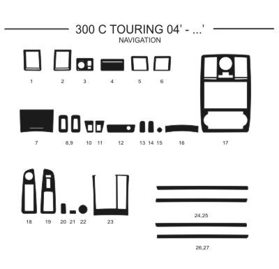 Dekor interiéru Chrysler 300C Touring, 2004-, s navigací, AL hliník