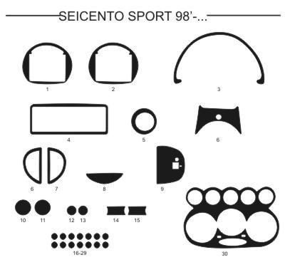 Dekor interiéru Fiat Seicento SPORT, 1998-, žlutý