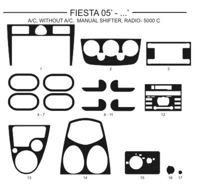 Dekor interiéru Ford Fiesta, 2005-, s i bez klimatizace, manuální řazení, rádio 5000 C, červený