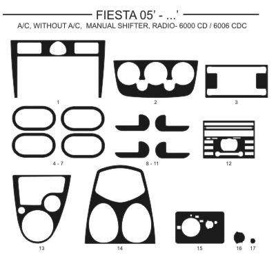 Dekor interiéru Ford Fiesta, 2005-, s i bez klimatizace, manuální řazení, rádio 6000 CD, 60006 CDC, žlutý