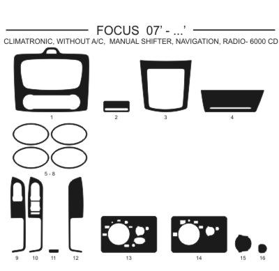 Dekor interiéru Ford Focus, 2007-, climatronic nebo bez klimatizace, manuální řazení, navigace, rádio 6000 CD, žlutý