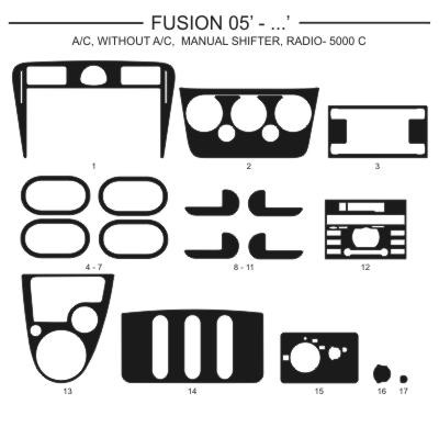 Dekor interiéru Ford Fusion, 2005-, s i bez klimatizace, manuální řazení, rádio 5000 C, černý
