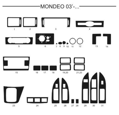 Dekor interiéru Ford Mondeo, 2003-2006, světlý mahagon