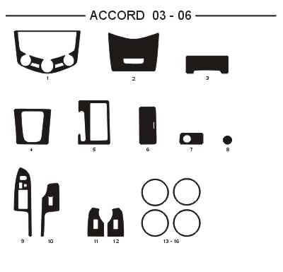 Dekor interiéru Honda Accord, 2003-2006, světlý mahagon