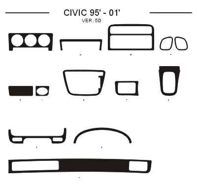 Dekor interiéru Honda Civic, 1995-2001, 5.dveř., modrý