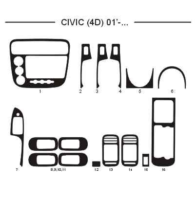 Dekor interiéru Honda Civic, 2001-2005, 4.dveř., světlý mahagon