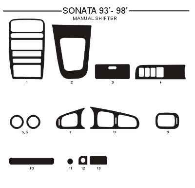 Dekor interiéru Hyundai Sonata, 1993-1998, manuální řazení, světlý mahagon