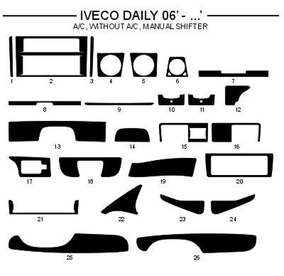 Dekor interiéru Iveco Daily, 2006-, s klimatizací, bez klimatizace, manuální řazení, světlý mahagon