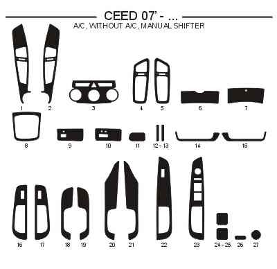 Dekor interiéru Kia Ceed, 2007-, s klimatizací, bez klimatizace, manuální řazení, světlý mahagon