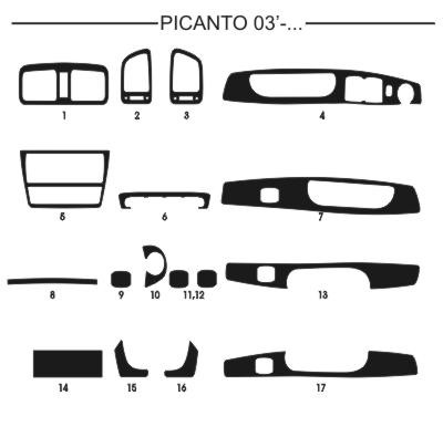 Dekor interiéru Kia Picanto, 2003-, světlý mahagon