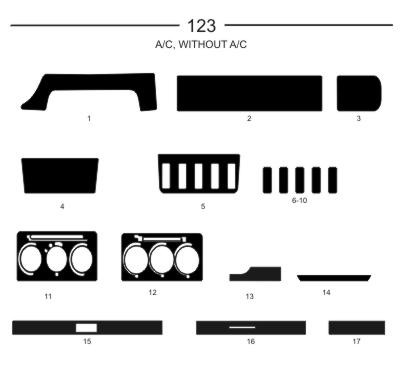 Dekor interiéru Mercedes 123, s i bez klimatizace, carbon standart