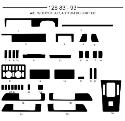 Dekor interiéru Mercedes 126, 1983-1993, s i bez klimatizace, automatické řazení, světlý mahagon