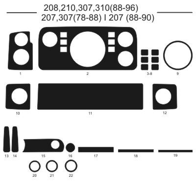 Plastický samolepící pryskyřicový dekor o síle 0,2-0,5mm. Jedná se o přesné výrobky na každý model vozu. Vzhledem k tomu, že se tyto výrobky vyrábějí na zakázku a objednávají ze zahraničí, prosíme o trpělivost. Dodací lhůta je cca 7-18dnů. Každý díl je samolepící a přesně vymodelován na danou část interiéru vozu. Polep je zalit v čiré pryskyřici silné cca 0,2-0,5mm, odolné poškrábání, či mytí chem. prostředky. Nevybledává, jako samolepka. Prosíme při objednání si dávejte pozor u středového dílu, který je u stejné značky vozu i vícekrát různý, podle výbavy. Podívejte se zda máte, či nemáte manuální klimatizaci, nebo climatronic. Rozdíly jsou někdy nepatrné, ale jsou. Například jeden otvor navíc pro spínač klimy, nebo jiné uspořádaní ovladačů u originálního autorádia, změna autorádia, manuální, či automatická převodovka apd. Sada je nalepena na folii ze které se daný díl odlepí a po zahřátí se lepí na určené místo. Změňte interiér svého vozu k nepoznání. Cena je za celou sadu, dle černobílého obrázku. Vzhledem k výrobě na zakázku, můžeme u starších a netipických vozů požadovat zálohovou platbu předem.