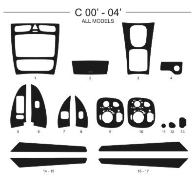 Dekor interiéru Mercedes classe C, 2000-2004, všechny modely, carbon plus