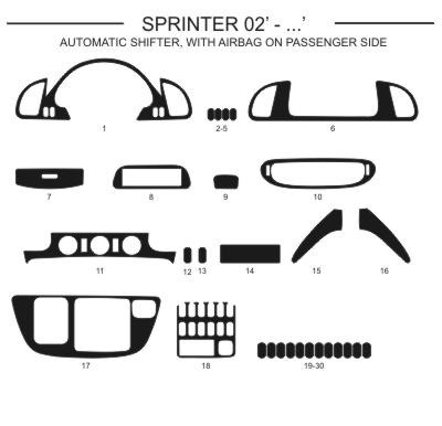 Dekor interiéru Mercedes Sprinter, 2000-2005, automatické řazení, s airbackem ON spolujezdce, modrý