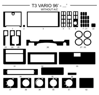 Plastický samolepící pryskyřicový dekor o síle 0,2-0,5mm. Jedná se o přesné výrobky na každý model vozu. Vzhledem k tomu, že se tyto výrobky vyrábějí na zakázku a objednávají ze zahraničí, prosíme o trpělivost. Dodací lhůta je cca 7-18dnů. Každý díl je samolepící a přesně vymodelován na danou část interiéru vozu. Polep je zalit v čiré pryskyřici silné cca 0,2-0,5mm, odolné poškrábání, či mytí chem. prostředky. Nevybledává, jako samolepka. Prosíme při objednání si dávejte pozor u středového dílu, který je u stejné značky vozu i vícekrát různý, podle výbavy. Podívejte se zda máte, či nemáte manuální klimatizaci, nebo climatronic. Rozdíly jsou někdy nepatrné, ale jsou. Například jeden otvor navíc pro spínač klimy, nebo jiné uspořádaní ovladačů u originálního autorádia, změna autorádia, manuální, či automatická převodovka apd. Sada je nalepena na folii ze které se daný díl odlepí a po zahřátí se lepí na určené místo. Změňte interiér svého vozu k nepoznání. Cena je za celou sadu, dle černobílého obrázku. Vzhledem k výrobě na zakázku, můžeme u starších a netipických vozů požadovat zálohovou platbu předem.