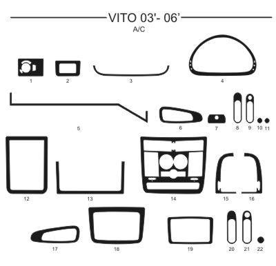 Dekor interiéru Mercedes Vito, 2003-2006, manuální klimatizace, černý
