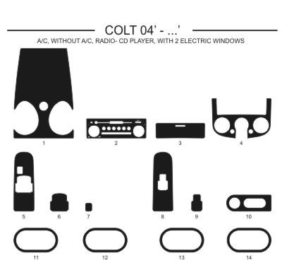 Dekor interiéru Mitsibishi Colt model 2004, s i bez klimatizace, 2x el. Okno, radio CD player , Al hliník