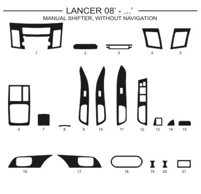 Dekor interiéru Mitsibishi Lancer 2008-, manuální řazení, bez navigace, Al hliník