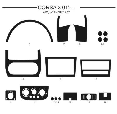 Dekor interiéru Opel Corsa C 2001-2006, s klimatizací, bez klimatizace, červený