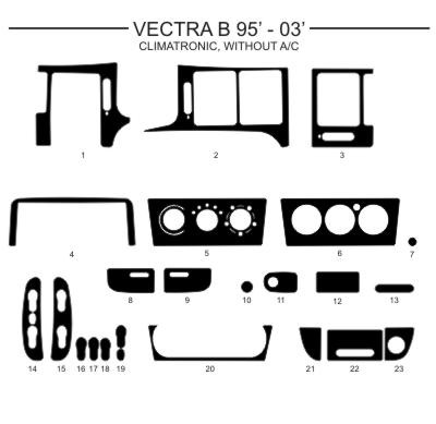 Dekor interiéru Opel Vectra B 1995-2003, climatronic, bez klimatizace, Al hliník