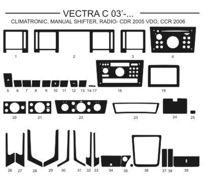 Dekor interiéru Opel Vectra C 2003-2006, climatronic, manuální řazení, radio-CDR 2005 VDO CCR 2006, černý