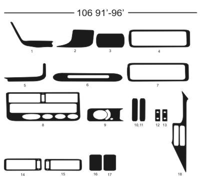Dekor interiéru Peugeot 106, 1991-1996, červený