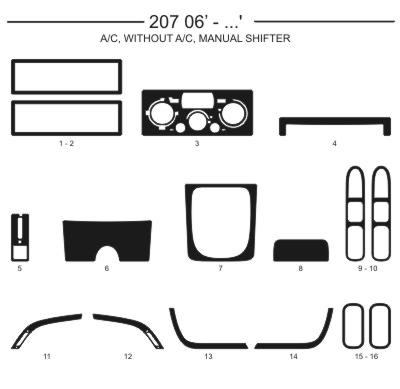 Dekor interiéru Peugeot 207, 2006-, s klimatizací, bez klimatizace, manuální řazení, červený